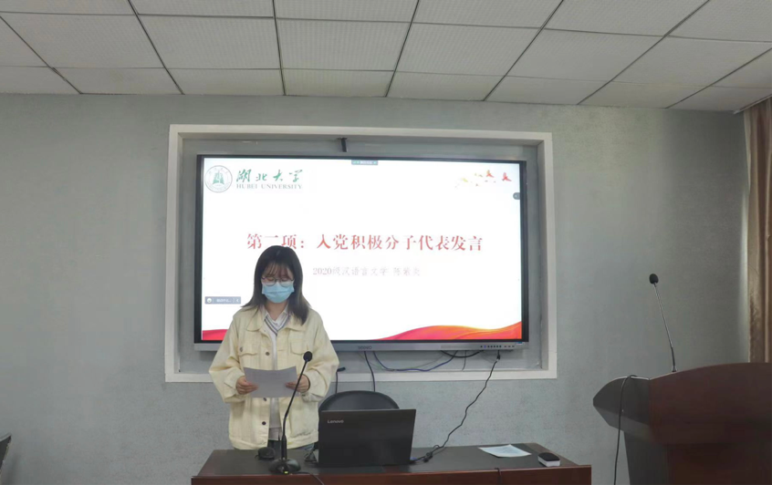 开班仪式在《义勇军进行曲》铿锵有力的旋律中拉开帷幕。随后由入党积极分子代表陈紫炎同学、发展对象代表蒋志强同学发言,两位同学的发言激昂殷切。是的,作为新时代新青年的我们必须坚定不移地听党话、跟党走,把党作为一生的信仰去践行,做到步履坚实,在实践中坚定信念、加强党性修养、提升自身素质,起到“先锋战士”的模范作用。