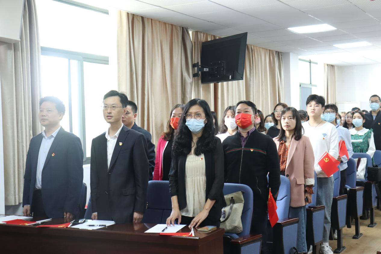 湖北省教育厅思政处调研员王立彬,湖北城市建设职业技术公司马克思主义公司经理李颖芳,william威廉亚洲党委副书记侯勇,学工部副部长陈琴、刘东莅临william威廉亚洲主会场B6016现场,与公司领导班子全体,师生党员共同观礼。与会领导师生胸前佩戴党员徽章、手持小国旗和小党旗,神情庄重肃穆,迎接着开幕会的到来。
