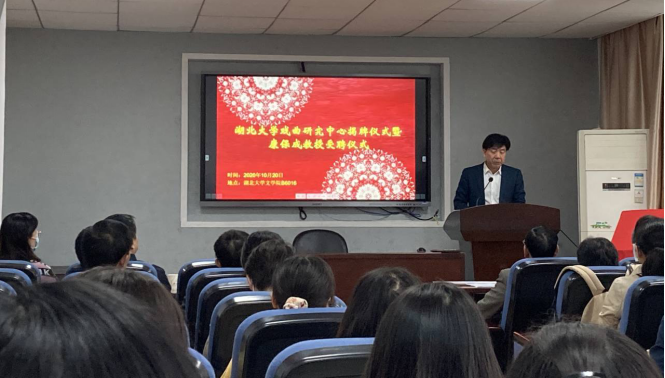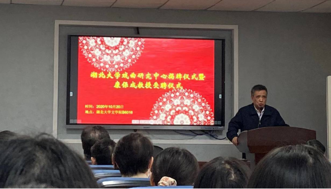 仪式在师生们热烈的掌声中结束。仪式之后,与会专家、学者参加了“湖北戏曲文化生态与特点”专家研讨会,为湖北戏曲文化生态的发展建言献策。