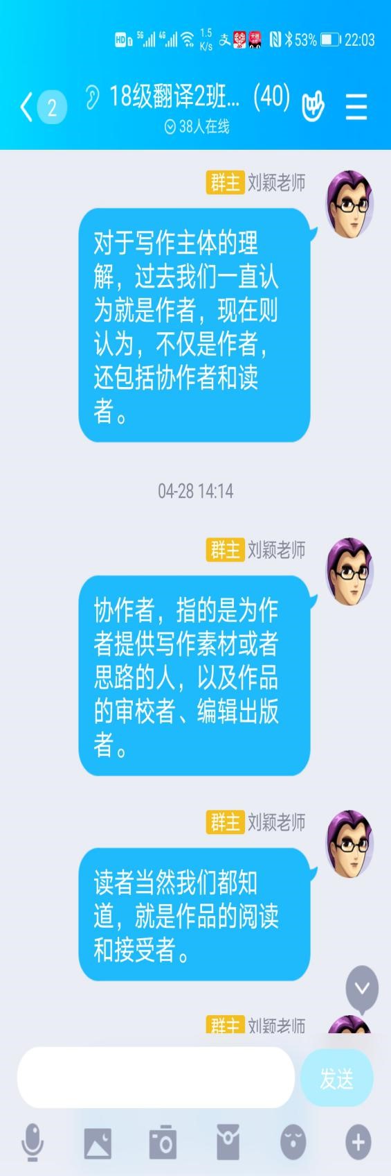 在学习通平台上,我在正式开课前为所有任教班级建立了课程群,并分别发布了课程公告。考虑到在线教学缺乏课堂面对面教学的现场感,同学们对老师普遍有陌生感,为了让同学们更形象直观地认识和了解我,在第一堂课给各班讲授应用写作课程绪论时,我平生第一次尝试了在线直播,完成了一次从教师变身为网络主播的角色转换。
