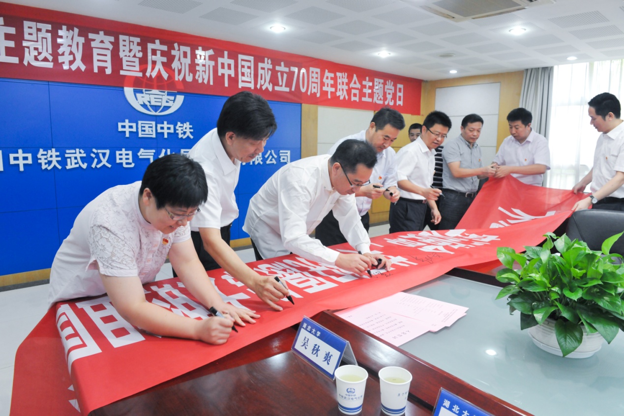 9月26日下午,公司党委组织公司党政班子成员、行政教工党支部全体成员以及各党支部书记共20人赴中铁武汉电气化局集团有限公司,开展了“不忘初心、牢记使命”主题教育暨庆祝新中国成立70周年联合主题党日活动。活动由中铁武汉电气化局集团公司纪委副书记吴满洋主持,相关职能部门负责人以及第一党支部、第二党支部、华中指挥部全体党员参加了党日活动。