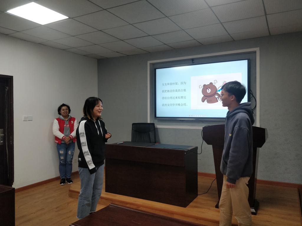 之后,老师请一位男生和一位女生上台进行情侣吵架的情景模拟:假如你的女朋友送给你一把吉他,你把吉他借给了另外一个女生,然后她发现了这件事,于是来跟你吵架。两位同学开始表现得有些羞涩,但逐渐放开自己,老师和其他同学也纷纷鼓励他们,现场气氛很好。从这个情景模拟入手,老师接着谈到男女生交往时不同的表现特点,例如女人喜欢/不喜欢男人的表现以及男人喜欢/不喜欢女人的表现,给出的示例都生动有趣。不同的表现源于不同的情感需求,于是接着老师谈到男女不同的情感需求,比如女性在感情上的需求更倾向于得到对方的关心和照顾,男性则倾向于获得信任、欣赏、羡慕和认可。在情绪低落时,女性更需要别人聆听她的感受,男性更需要独自安静。在寻找自己价值时,女性更希望在人际关系中肯定自己,男性更希望从成就中建立自我。在增进爱情时,她需要感到被对方了解和重视,男性需要感到被对方欣赏和感激。这些内容都让大家获益良多。