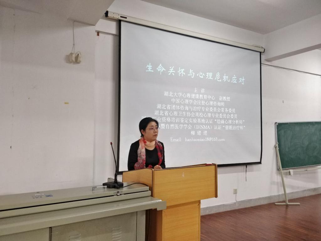 讲座进行到后半部分,老师开始问大家在遇到困难与挫折的时候,如何应对危机,看一看现场同学对于心理危机相关知识的了解程度以及应对措施。之后,老师对心理危机的基本知识如定义、分类和应对措施等方面进行了详细的介绍。同时,老师强调了要善于发现自己和周围身边的人是否存在心理危机。一定要积极应对,审视生命价值观,察觉情绪,找回理智,分化情绪,认识负面情绪的意义和价值,在自我帮助的同时也要愿意给予别人帮助,要学会倾听传递爱心,学会观察并向老师报告同学存在的心理危机的情况。