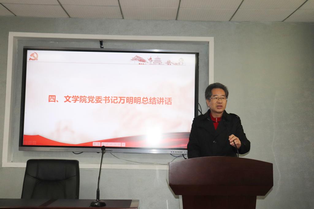 大会第四项,公司党委书记万明明总结讲话。万书记首先代表公司党委向团总支的成立表示衷心的祝贺。随后,万书记从四个方面展开讲话,第一,加强思想教育;第二,推进阵地建设;第三,促进队伍发展;第四,明确工作要求。万书记号召大家不断树立全心为同学服务的思想,做好员工工作。最后,万书记预祝公司研究生团总支能够取得优异的成绩,并表达美好希翼。