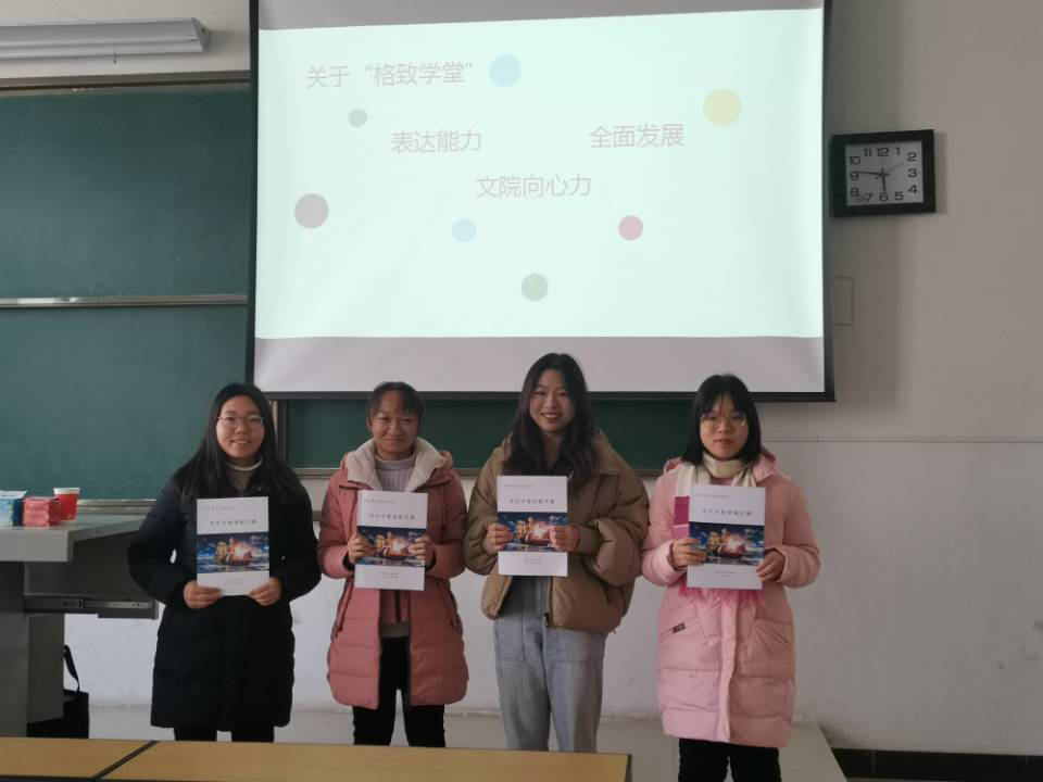“格致学堂”第一讲的主讲人是16级汉语言文学班的张诗蕾、林婷、覃雪娇和16级中基班的翟友钢,12月3日下和12月4日上午,他们分别在阳逻校区综合楼B311、B108、B109、B101四个教室为四个班的同学进行了主题为成语小故事的讲课,四位主讲人分别准备了有关成语的丰富知识与多样活动。正式开课前,公司团委书记邓超老师及几位主讲人为19级员工发放《我的航海时代——william威廉亚洲员工专业导航手册》,并指导大家如何运用于填写。