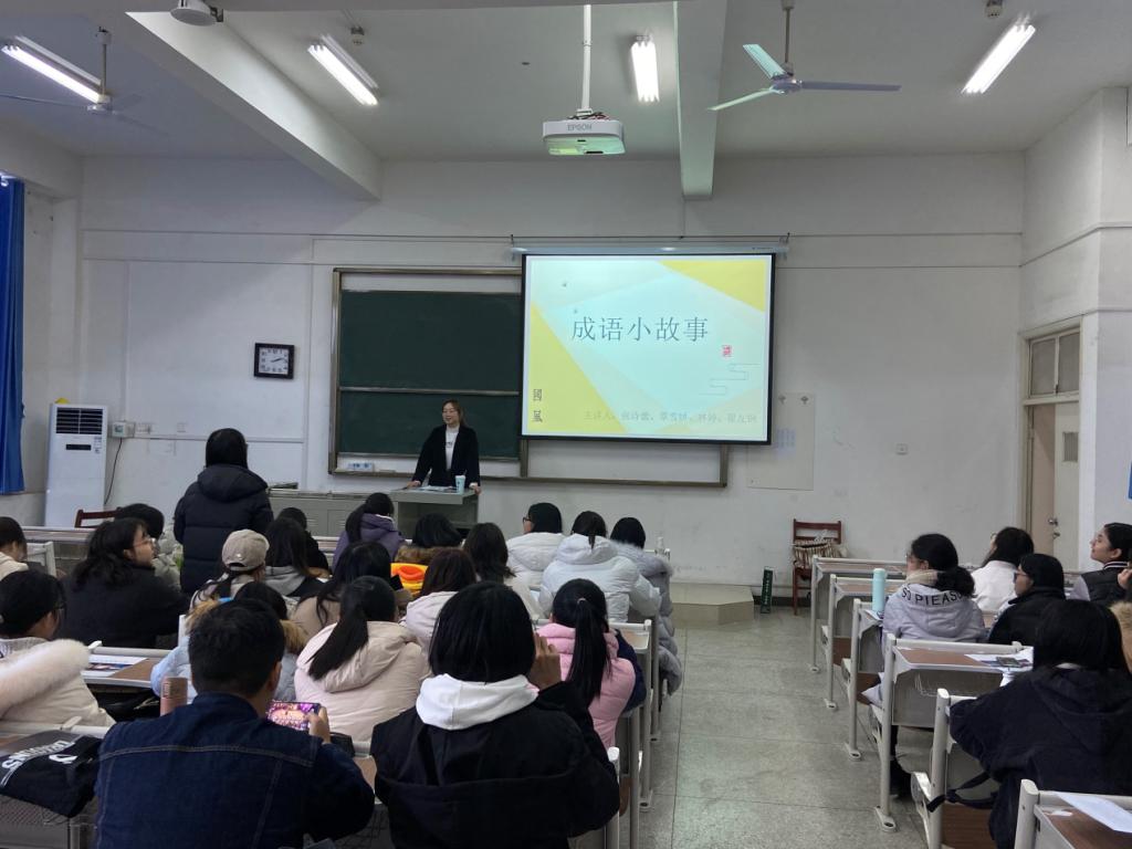 “中文系老员工如何认识成语?”这是覃雪娇对1904班同学提出的课前问题。接着,她以成语中的饮食文化为引,指出我们作为中文系的员工,应更多地思考到成语的历史,即它的典源、演变等问题,还要思考成语在当今这个融媒体时代如何继承和传播。实训课开始前,她以开火车的小游戏让大家相互熟悉,很快活跃了课堂氛围。实训课上,看成语讲故事环节最为精彩,不少同学在讲故事过程中加入了自己的表演,场面生动有趣。覃雪娇在课程中一直鼓励大家要敢说敢做,多参与、多表达,中文系的员工不只是专业基础知识要学扎实,还要注重自己的全面发展,培养自己的综合素质。