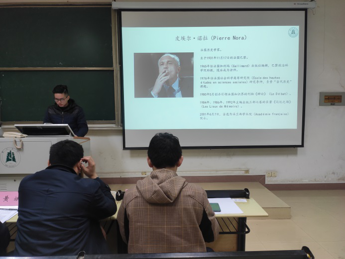 《记忆之场:法国国民意识的文化社会史》作为当代法国史学界最有影响的历史著作之一,汇总了法国集体经验史研究成果。吕兴林同学分享了这本书的读书报告。接着他列举了《七月十四日•从狂暴之日到庆典之日》 、 《埃菲尔铁塔》 、 《环法自行车赛》等作品进一步阐释“记忆之场”理论。