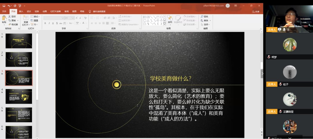 2020年4月16日晚19:00—21:00,公司人文讲坛第335期《公司美育的三个难点与三重关系》在腾讯会议如期举行。新冠病毒疫情的特殊时期,同学们只能在家里学习、上课、读书。为了凝聚学习氛围,强化美育的发散性和自育性,公司为从本科到博士的同学开展学术讲座。这一次公司开启了特殊形式的“云讲座”,同时也开启了公司2020年新学期学术讲座的序幕。