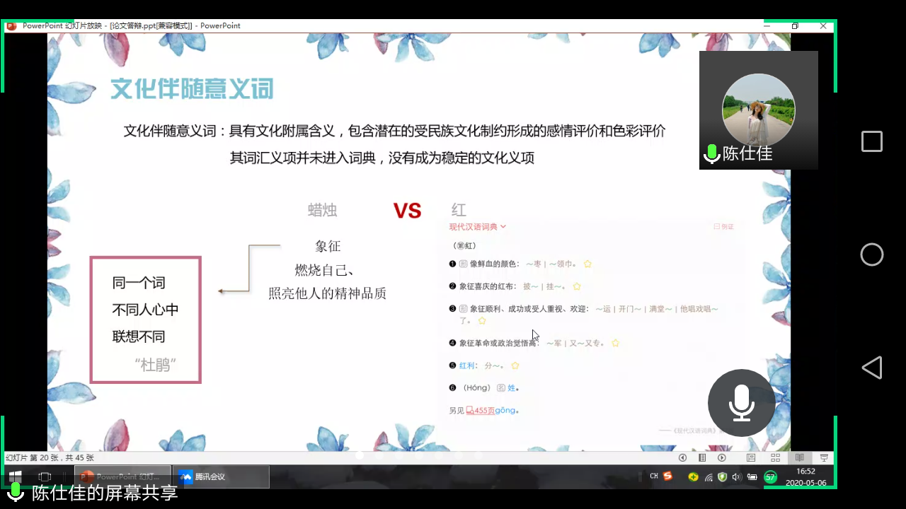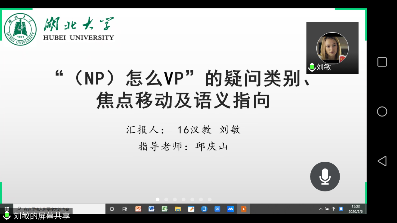 “云答辩”对答辩现场进行全程录屏、录音记录,对答辩的质量也是更加用心地把控,务必确保线上答辩不因为方式转变而降低标准。5月6日,全院17个论文小组同时在线答辩,各组答辩主席和委员,严格要求,给毕业生上好最后一堂课! “受疫情影响,我们成为第一届‘云答辩’的毕业生,在全体老师和同学们的共同努力下,我们的答辩进行的非常顺利,但也留下了一些不能面对面的遗憾”参与“云答辩”的本科毕业生刘昕同学说。