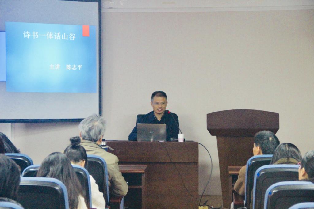 2018年11月30日上午,人文讲坛第285期讲座在逸夫楼A5017顺利举行。暨南大学陈志平教授应邀作题为《黄庭坚的诗书人生》的精彩报告,讲座由郭康松书记主持。
