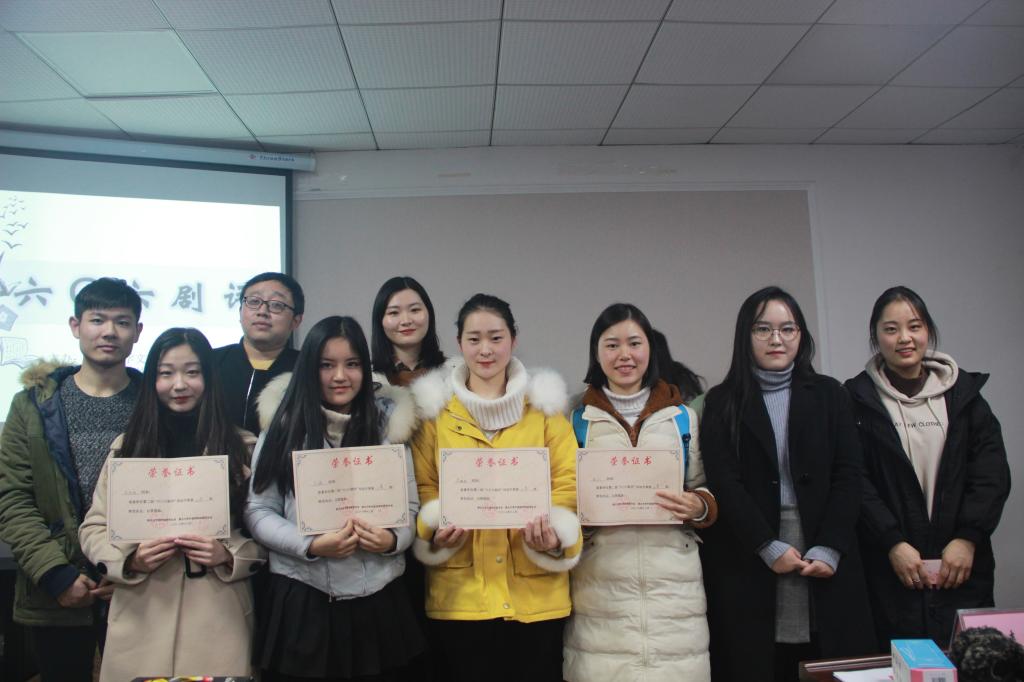 经过各位参赛选手的展示,三位评委以及十位大众评审对其进行打分,最终确定了比赛的结果。王琳获得了第一名的好成绩,二等奖的获得者是朱璐璐、袁迪雅,三等奖获得者分别是程庆文、江亚男、张兰韵。最后,全场以热烈的掌声,祝贺获奖选手。会后,主席彭莹为每位参赛选手颁发奖品,并合影留念。