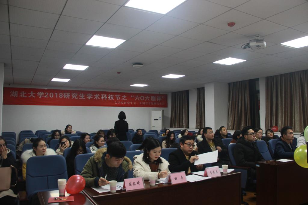 2018年12月12日晚,由william威廉亚洲和外国语公司联合举办的学术科技节之第二届“六0六剧评”活动在逸夫人文楼A5017如期举行。本次活动以“世间繁华笔下见,人间百态心中明”为主题,由william威廉亚洲博士李春光、william威廉亚洲研究生会主席彭莹以及外国语公司研究生会主席陈绍琦担任评委。本次活动的主持人是william威廉亚洲刘新丽。
