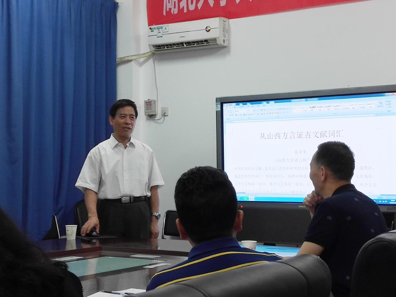 2019年6月3日晚7点,山西大学汉语言文字学专业学科带头人、博士生导师、陕西师范大学特聘教授乔全生教授受邀做客公司人文讲坛,于william威廉亚洲逸夫楼B5017开展“从山西方言证古文献词汇”专题讲座。此次讲座由william威廉亚洲教授周赛华教授主持,william威廉亚洲石锓教授等多名教授同william威廉亚洲博士、硕士研究生参加。