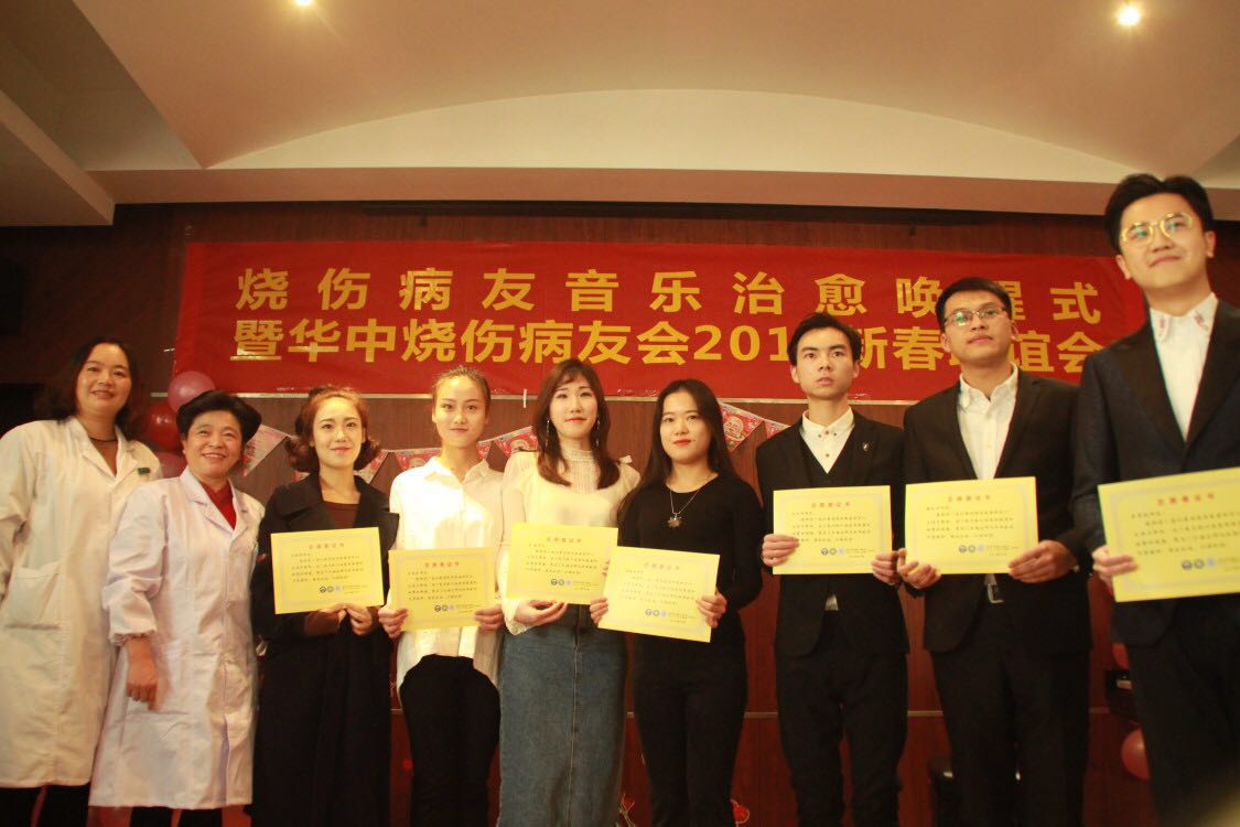 为了使烧伤患者感受到来自社会的爱与关怀,用音乐治愈心灵,促进患者康复,12月21日上午,武汉大学同仁医院(武汉市第三医院)烧伤科携手公司青年教师王希翀及唤醒花园教育,举办了“让爱唤醒,浴火重生”唤醒音乐会,暨2018年新春联谊会,为受烧伤病痛的朋友们送去了美妙的艺术享受!