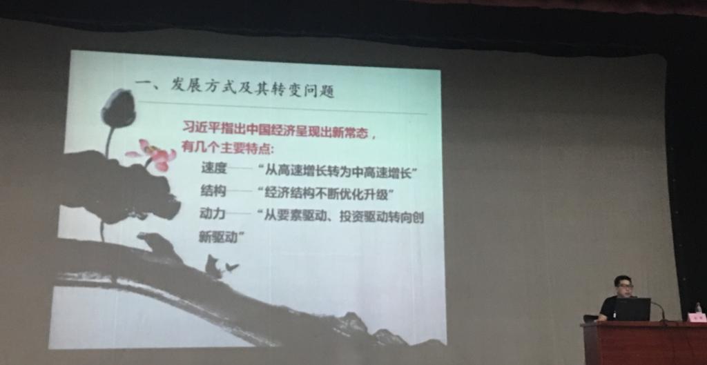据悉,此次课程主要有以下四个方面的内容。第一,中国的发展方式及其转变问题。杨邦说中国经济呈现出高速度、优结构、新动力的新常态,但却面临着环境压力与人口红利减少的难题。他以沙湖的环境治理过程为例,向大家展示出中国最严环保法的效力,以及针对人口实施的新“二孩”政策。他指出GDP发展的三驾马车:投资、出口、内需,在一定程度上受到影响,中国当前投资比重最大的房地产已经出现明显弊端,出口受到关税限制,国内市场实际内需不足,因此,“一带一路”建设为中国提供了机遇,其中我国最有竞争力的高铁技术领先世界。第二,关于法治、反腐、贫富差距的问题。一方面是为法治强国而歌,中国的法律制度、法制体系不断完善,实现了质的飞跃。另一方面是反腐力度不断加强,并举出贪污判死刑的实例。同时,他总结到新时代下老员工的特点:民主政治意识自主参与意识逐步增强,法治意识维权意识更强。但是中国也正面临着严峻的贫富差距问题,他对此也提出了几点关于缩小差距的措施。第三,中美关系的现在以及未来问题。杨邦从之前世界范围内发生的贸易战出发,从什么是贸易战,美国宣布对中国实施制裁的措施以及贸易战发生的结果等方面,具体分析了现在可能发生的中美贸易战问题。第四,新时代老员工发展问题。杨邦认为老员工应该拥有的三种能力分别是学习力、危机力、创新力。此外他还以自己骑行西藏的经历为例为大家讲述了自制力和忍耐力的重要性。