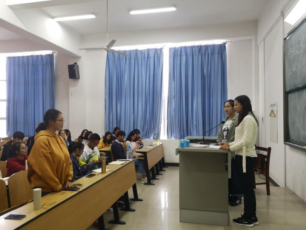 11月2日下午,公司开展的格致学堂第四讲成功开讲。来自2015级中基班的柳杰、余倩文、陈沩以及王雨晗在综合楼多媒体教室为2018级中国语言文学专业的员工讲授影视配音和节目主持的主题课程。