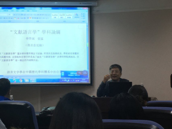 华学诚教授在学术报告中结合他的最新研究成果,把“文献语言学”置于学科体系概念下讨论,从语言文字学在中国历代学科体系中的位置、文献语言学作为学科名称的提出及解释、文献语言学作为学科名称的定义及定位三个方面进行了深入剖析和讲解,还从学术史、学术研究等属于学术体系的具体内容方面论述“文献语言学”的学科特点与地位,阐述了“文献语言学”这一概念的内涵和外延。他不仅主张以一种全局观,从共时和历时相结合的角度上探究“文献语言学”这一学科的演变发展,还强调了应注重学科交叉综合性,从更广阔的视野探索“文献语言学”更多的可能性和创造性,他提出的“在语言学科发展上要着重提升自己国家文化的主体意识”这一精彩论点更是博得了在场师生们的阵阵掌声。