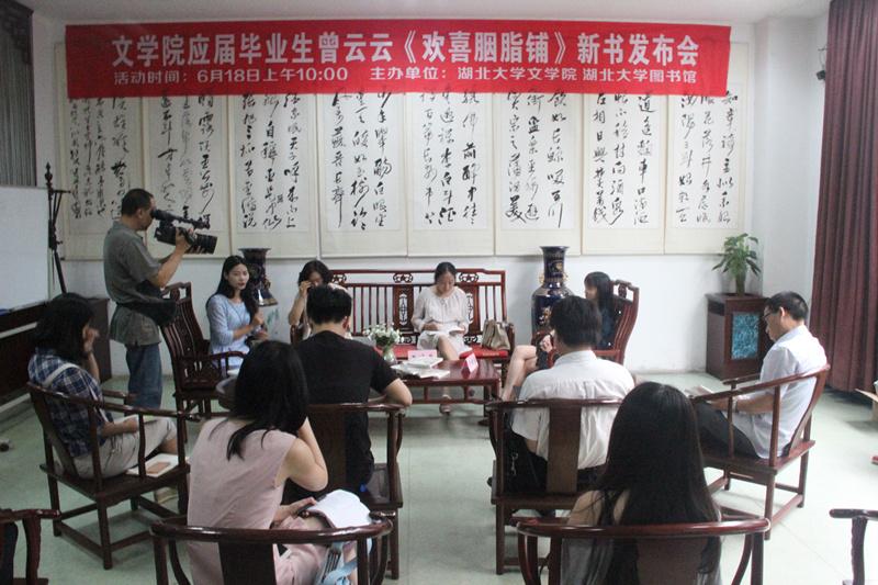 6月18日上午,公司2015年毕业典礼隆重举行,公司应届毕业生、11中文的曾云云的第一本新书《欢喜胭脂铺》发布会也同步在图书馆举办。经理刘川鄂更是携长江文艺常务副主编何子英、知名作家王晓英,来到发布会现场,为自己员工的新书发布助威打气。