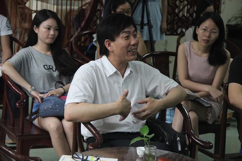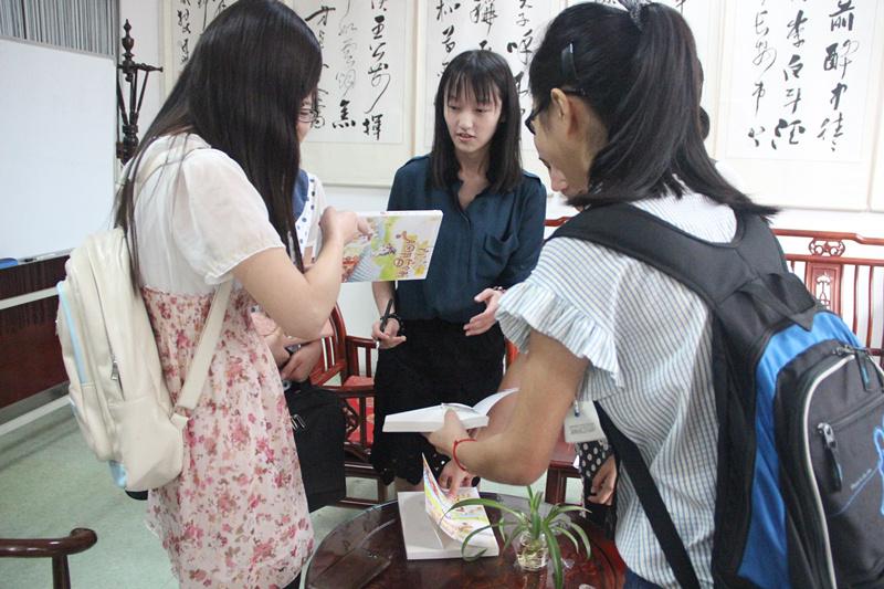 曾云云正在和专家何子英、王晓英进行交流