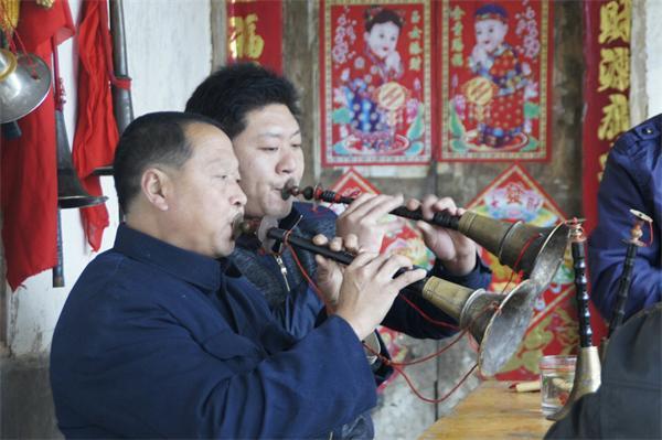图为非遗文化传承者演奏《沮水巫音》