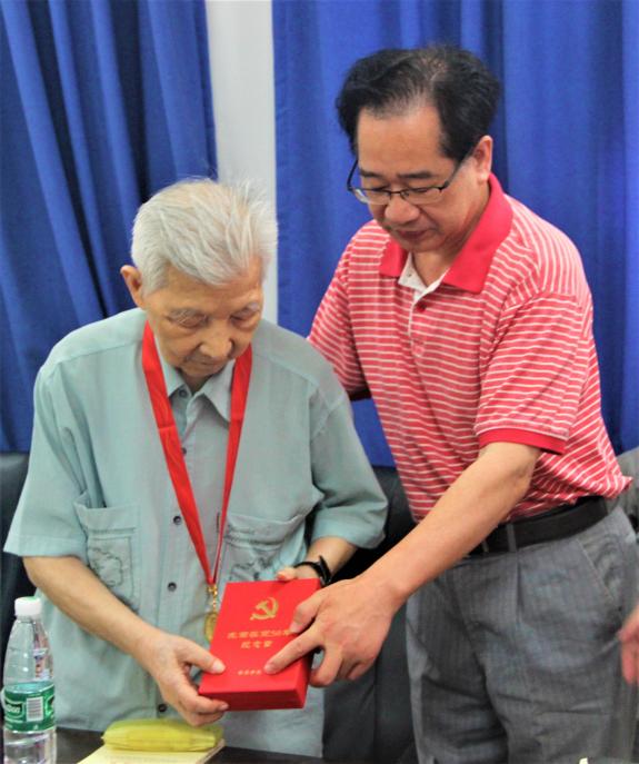 公司离退休党支部书记张虹向公司对于离退休党员的关心和慰问表示感谢,公司党委书记万明明和经理张鹏飞向六位离退休老党员颁发纪念章,员工代表送鲜花表达敬意。万书记指出,公司广大党员师生要向老党员看齐,继承和发扬老党员及前辈的优良传统和宝贵精神,并表示公司党委将学习贯彻习近平总书记关于老干部工作的重要指示精神,始终对党员老同志保持敬畏之心,倾诉关爱之情,多做务实之事。