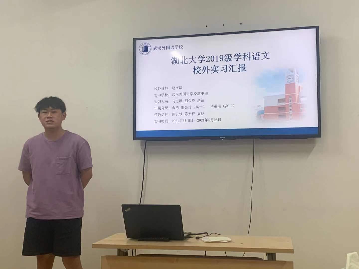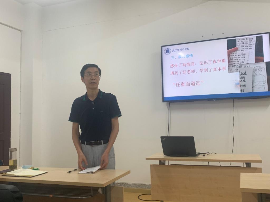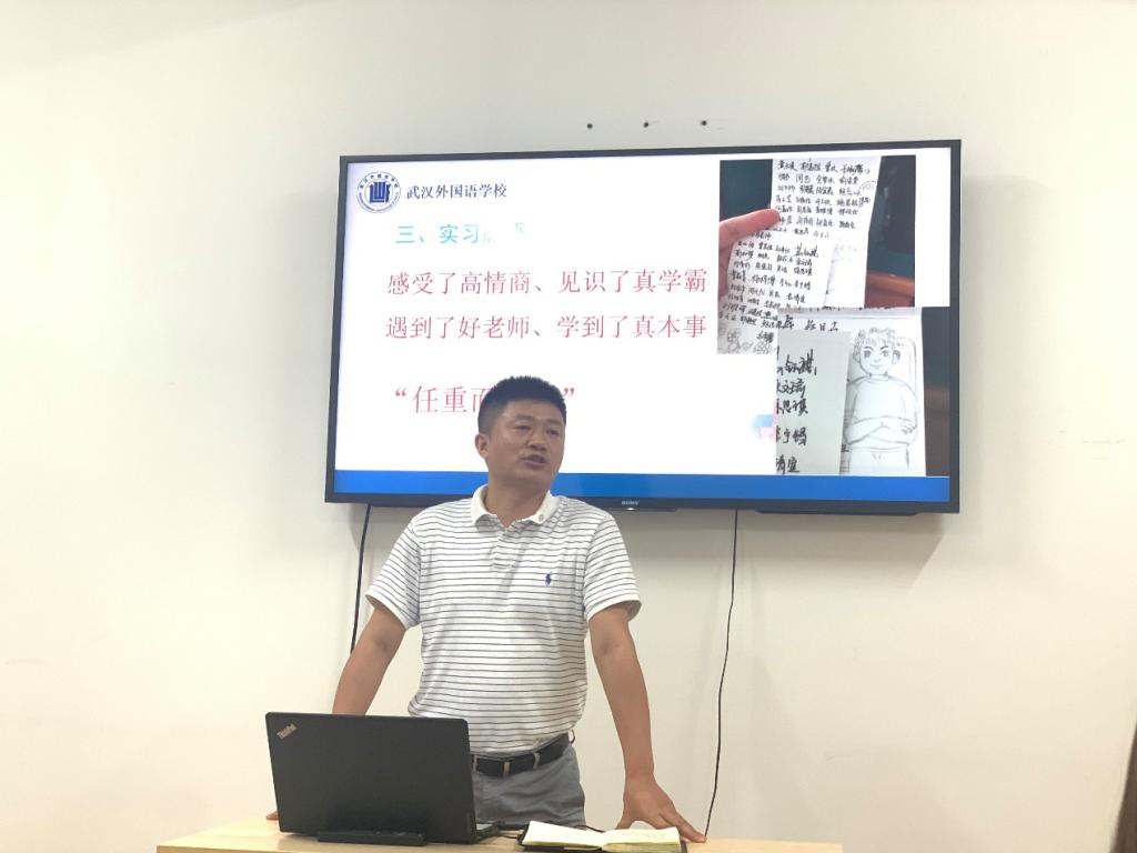 最后,前往武汉外国语高中部实习的马道汛同学分析了目前高中生的心理结构和原生家庭的关系,指出“弟子不必不如师”,希望大家能达到教学相长的良好效果。