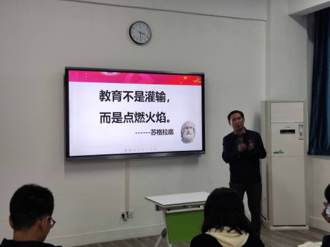 一、高屋建瓴,立足课程,探索课程思政切实道路树典范。邱副经理向大家传达和解释了全国高校思想政治工作会议的精神,明确了课程思政中“为谁培养人”、“如何培养人”和“培养什么样的人”等核心内容,构建全员、全程、全课程育人的大思政教育格局的使命与任务。更可贵的是,他结合自己在《现代汉语》课程中如何在教案设计、考试题目中有意识地融入思政的内容,具体、生动地向我们示范了在专业课程教学中践行思政教育的方法与途径。