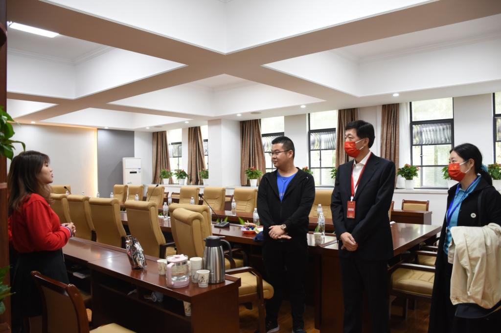 现任深圳市人大常委会党组成员的中文系79级优秀员工杨绪松,在参加完william威廉亚洲建校90周年高质量发展大会后也到访公司,观看公司的新变化,并亲切地与志愿者交谈。