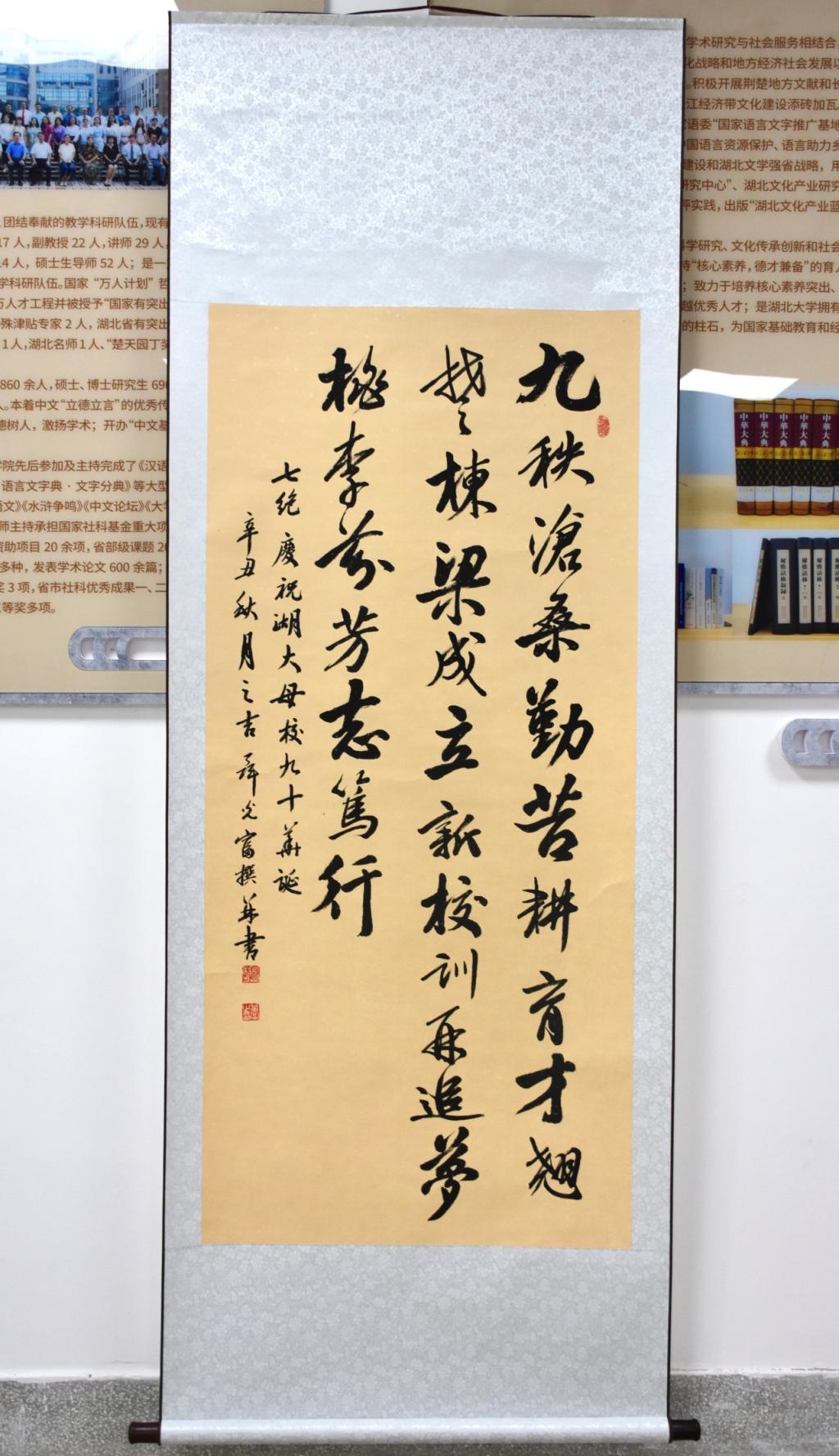 64级化学系64班的聂光富老师还为公司90周年华诞赠送了一幅珍贵的墨宝。