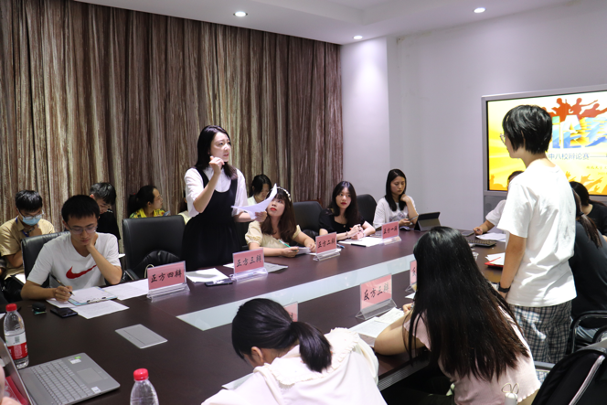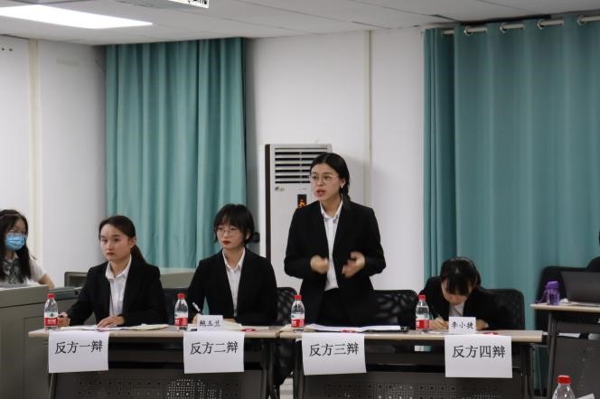 初赛现场,公司文院辩论队作为反方和华师文院研究生辩论队就“短视频的火爆是精神文化丰富/匮乏的体现”的辩题展开辩论。本场比赛评委由武汉大学王海龙老师和知名辩手王达、周吉元担任,比赛采取分组抽签晋级制。