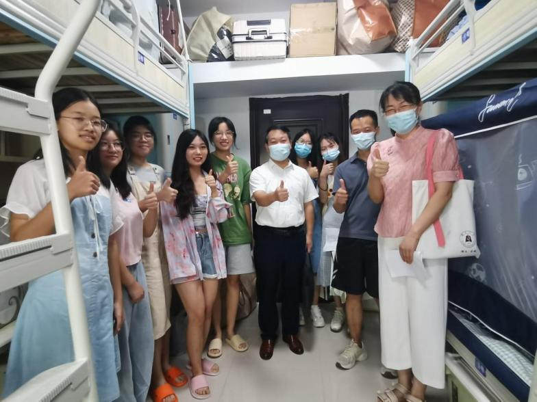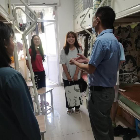 院领导及老师在走访21级寝室时向他们赠送了防疫物资并对新生的到来表示了热烈的欢迎。之领导老师们还细心询问新生们的入校心情和未来规划,解答员工回到本部后的学习、生活问题,暖人心房。