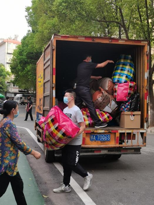 在回迁搬运过程中,老师全程参与,指导现场安全有序展开搬运工作,为21级学子们注入了一剂强心针。2021级班主任各司其职,坚守岗位,时刻关注各班搬寝进度,确保工作有条不紊顺利推进。老师和员工志愿者们一个接着一个排成流水线,将员工行李从货车上传递到宿舍口,再依次按行李标签搬到寝室门口。经过大家通力配合,物资搬运等各项工作有条不紊进行,用时短、效率高,于8月28日上午八点半完成了搬迁工作,同学们顺利入住新寝室,迎接新学期的到来。