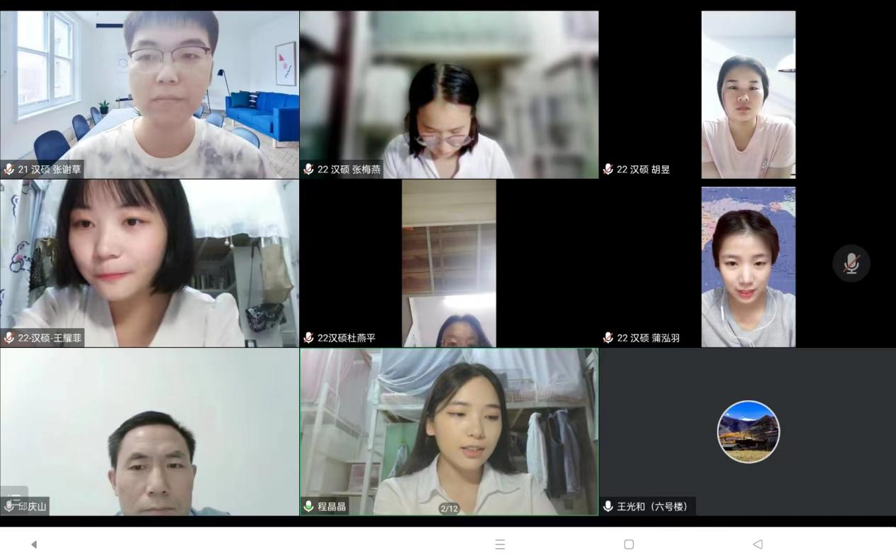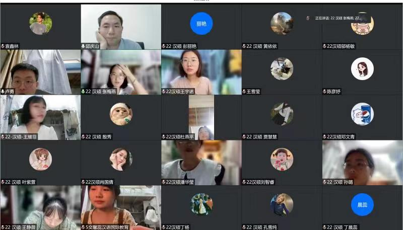 当金秋九月邂逅了莘莘学子,为了打破新生之间的藩篱,便于新生之间相互认识,增强公司凝聚力,9月17日晚7点至9点,公司2021级与2022级汉语国际教育硕士在线上开展了一场别开生面的联合班会,班会主题为:汉语国际教育硕士就业实习分享交流会暨22级新生线上见面会。出席此次会议的有公司邱庆山副经理、王光和老师、22级汉硕班主任邓杉杉老师、21级汉硕班主任余志凯老师、辅导员王翌婵老师以及21级、22级汉硕专业全体同学。联合班会由21级汉硕班长张谢草同学主持。