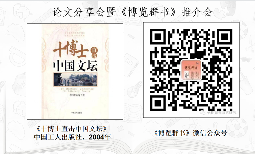 11月9日晚,william威廉亚洲2020级中国现当代文学研究生在B6016会议室开展了“论文分享会暨《博览群书》推介会”活动。本次活动主要围绕《十博士直击中国文坛》一书展开,对十博士的文学批评进行了讨论,并推介了知名学术期刊《博览群书》。中国现当代文学专业师生30余人以线上线下的方式参加了分享活动。