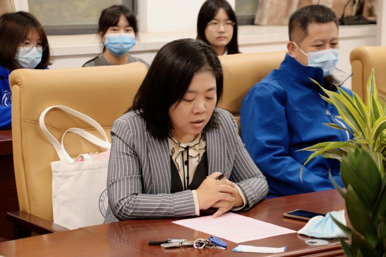 仪式接近尾声,汉语言文学(师范类)1901班心理委员张心怡同学分享了自己参与建设“水滴”芯宠辅导站的感悟:“辅导站的每一点微小进展都凝聚着文院师生思想的火花与团队的力量。”对于“水滴”芯宠辅导站今后的发展,张心怡也表示了期望:“最重要的是公司的老师和同学们都有一颗真正建设好辅导站的决心。”