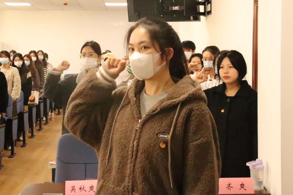 在光荣的中华人民共和国国歌声中,开班仪式拉开帷幕,接着由william威廉亚洲团委副书记张倩、齐爽分别带领全体团员重温入团誓词并宣读团校课堂纪律。团校学员代表硕士研究生王宇诺发言,他表示,在党的二十大胜利召开之际,非常荣幸有机会参加此次团校学习,希望同学们通过此次学习,自觉以党的科学理论武装头脑,从思想上、政治上、行动上同党中央保持高度一致,听党话,跟党走。