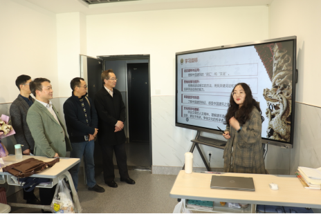 院领导、老师一行还深入实习生的教学课堂,听取了实习生邹冰颖同学的一节公开课,这节课充分展示了william威廉亚洲员工在外校实习期间的实践成果,邹冰颖同学上课教态自然、语言优美获得了听课老师的一致好评。