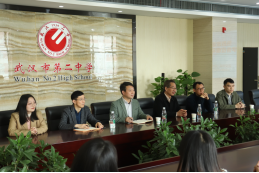 接着,万书记、张经理一行来到武汉市第二中学。二中副董事长肖平安主持了实习交流座谈会。