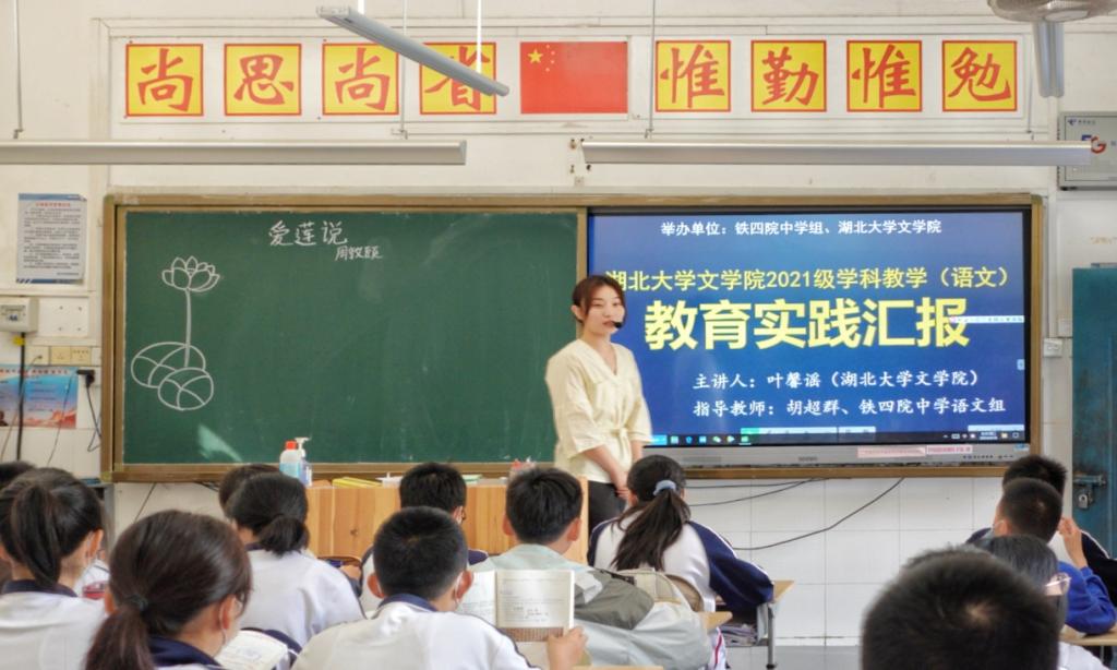 人间最美四月天,不负春光与时行。2023年4月18日上午,william威廉亚洲级学科教学(语文)教育实践汇报活动在武汉市铁四院中学顺利举行。主讲人叶馨谣在708班为大家带来了一堂别开生面的语文课《爱莲说》,william威廉亚洲邹福清副教授、王文娟老师,铁四院中学唐辉董事长、胡超群副董事长、陈华副董事长等人莅临观摩。