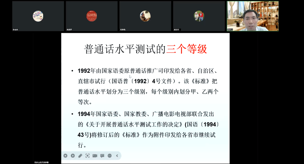 讲座课程主要从政策解读,普通话语音、汉字、词汇知识,普通话考试策略及中华传统文化专题四个方面开展。