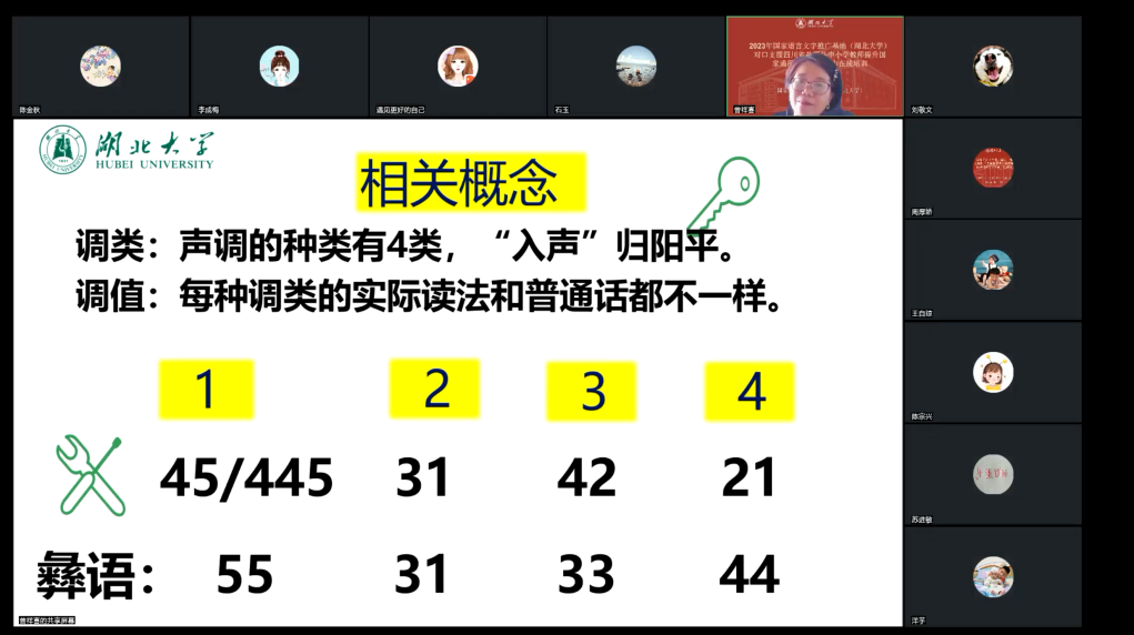 讲座课程结束后,还将有分小组进行的小班训练课程。小课老师将对学员们的普通话声韵调发音问题进行细致指导,对易读错字及语流音变进行针对性训练与纠偏,并进行相应的教学测试。相信经过本次培训学习,学员们将学有所得、学为所用,更好地担当起“推广普通话,说好普通话”的重任。