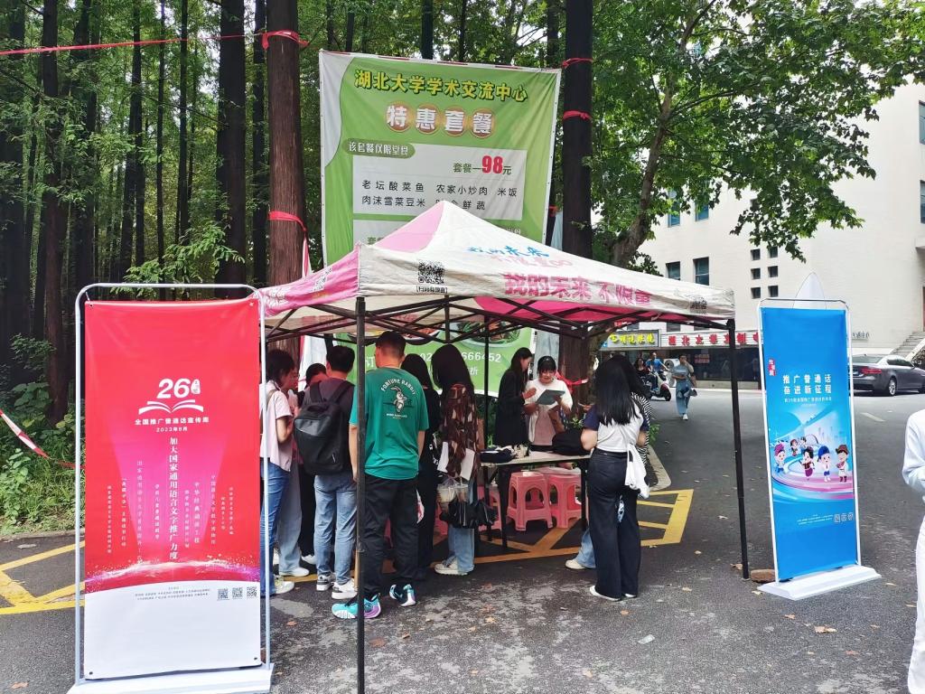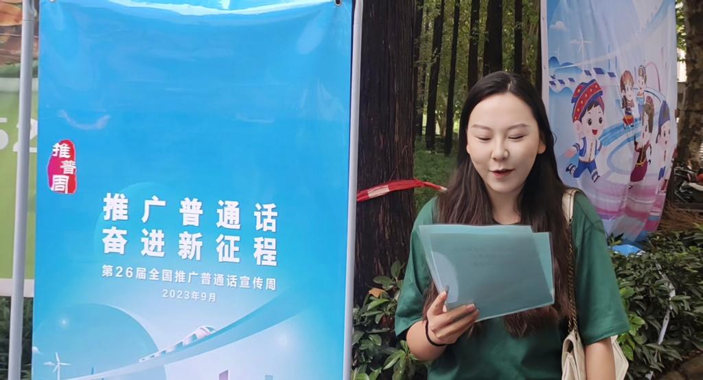 推普活动期间,校园内还设置了推普趣味游戏小摊点,号召同学们在推普海报上签上自己的名字,并进行绕口令挑战、推普小知识问答与易错字大考验的闯关游戏。吴佳纹同学是新闻传播公司的大三员工,积极参加了本次的趣味推普活动,并成功闯关获得礼品,对于本次推普周活动她这样说道,“说好普通话是展示中国形象、讲好中国故事的必要之举。作为一名播音与主持艺术专业的员工,我会继续努力学习,提高自己的普通话水平,为推广普通话、传播中华文化做出积极的贡献”。