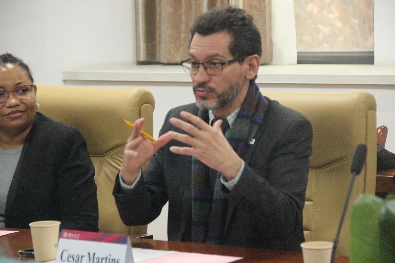 与会人员就人才培养和团队建设交流分享了宝贵意见。张鹏飞对培养“中国通”的想法表示肯定,认为这不仅顺应了中外合作的潮流,更顺应了时代发展的方向。他表示应优化培养方案,调整课程设置,利用好线上会议优势,让更多中文专业学科的教师参与讨论。接着,william威廉亚洲国际交流与合作处处长邓小明表示希望william威廉亚洲能派老师到巴西进行教学工作,为双方合作的顺利开展、中华优秀传统文化的传播贡献力量。圣保罗州立大公司办主任Cesar Martins也对项目的推进举措提出建议。