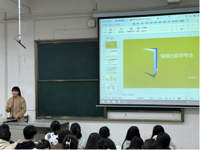 编辑出版专业负责人张琦老师从专业前景、专业课程设置、专业团队优势、专业特色、办学成果、毕业去向六个方面介绍了本专业。结合时代背景,提出跨界融合创新人才,为同学们展示了编辑出版学专业的教学创新成果和员工获奖情况。最后,张琦老师展示了2017级员工的课堂作业,以及对学弟学妹们的寄语,并鼓励员工们积极选择编辑出版专业。
