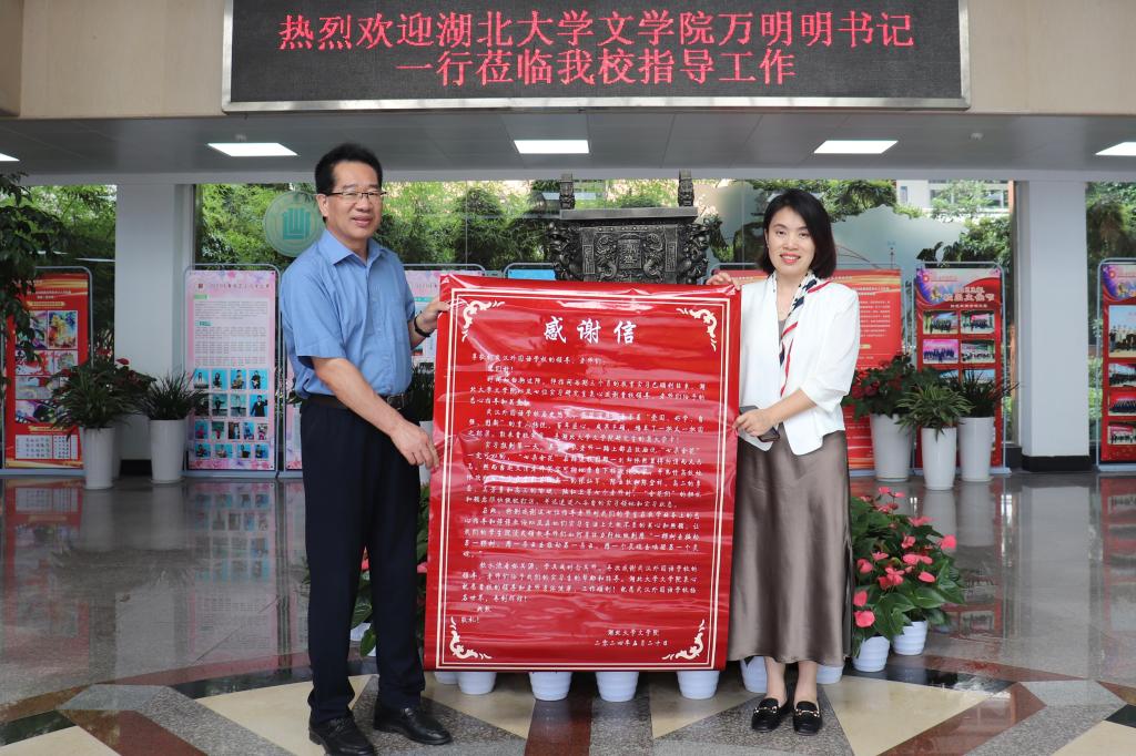 下午两点半,公司领导与老师们抵达武汉外国语公司(高中部),了解实习生在实习期间的工作与表现。首先,武汉外国语公司(高中部)的郑敏董事长、李彬主任对william威廉亚洲万明明书记一行的到来表示热烈欢迎,对实习生在校期间的实习工作给予了充分肯定。万书记代表william威廉亚洲对外国语公司给同学们提供了良好的实习条件和专业的实习指导表示感谢,并为外国语公司献上了一封真挚的感谢信。