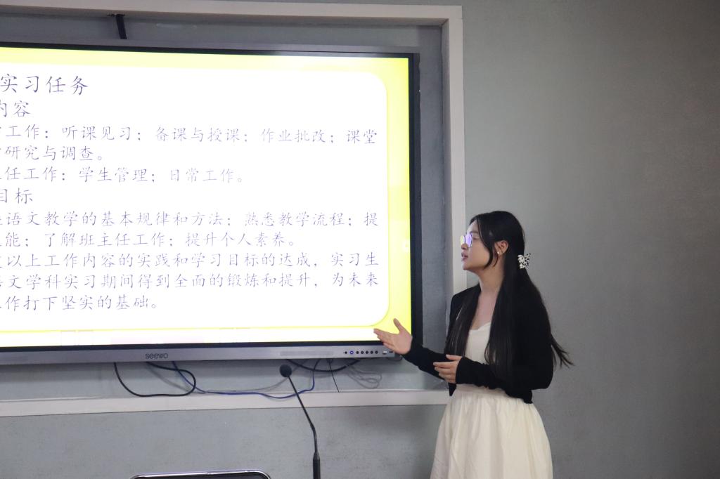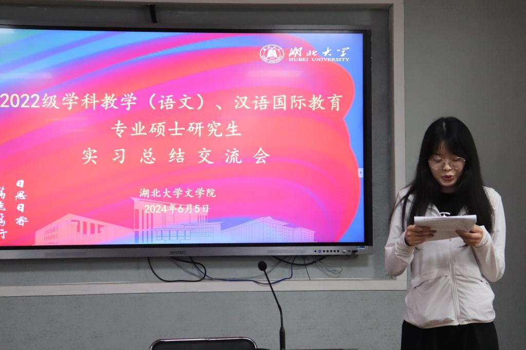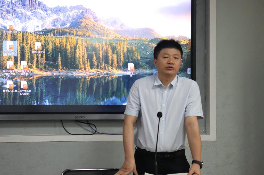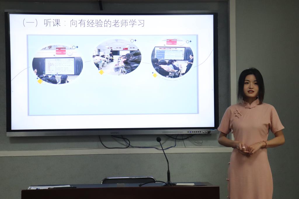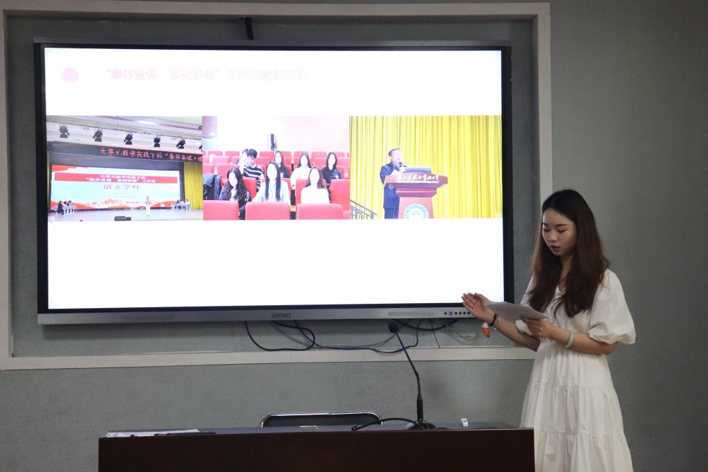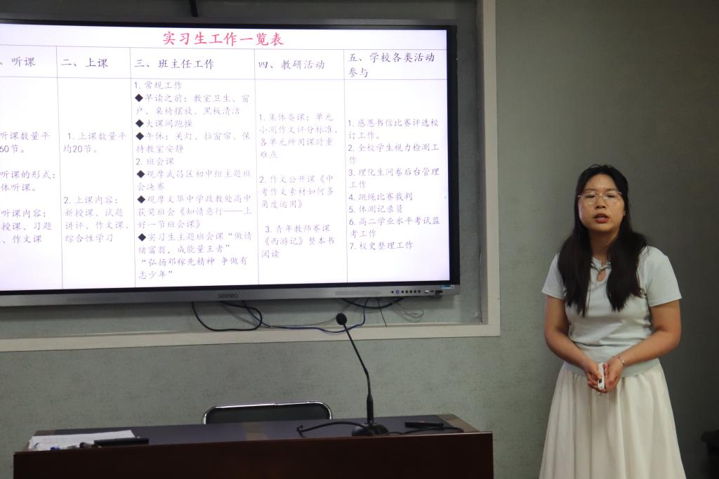 武昌实验中学实习生胡梦洁、文华中学实习生李慧、铁四院公司实习生张玉雪分别从教研与备课、新授课和班主任实习工作等方面展开了专题汇报。