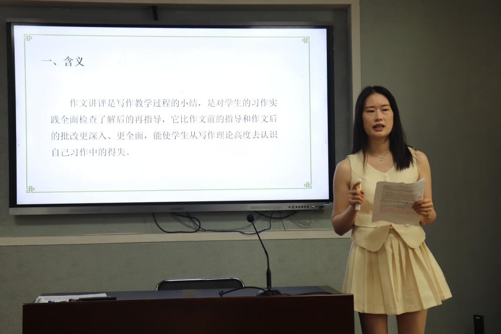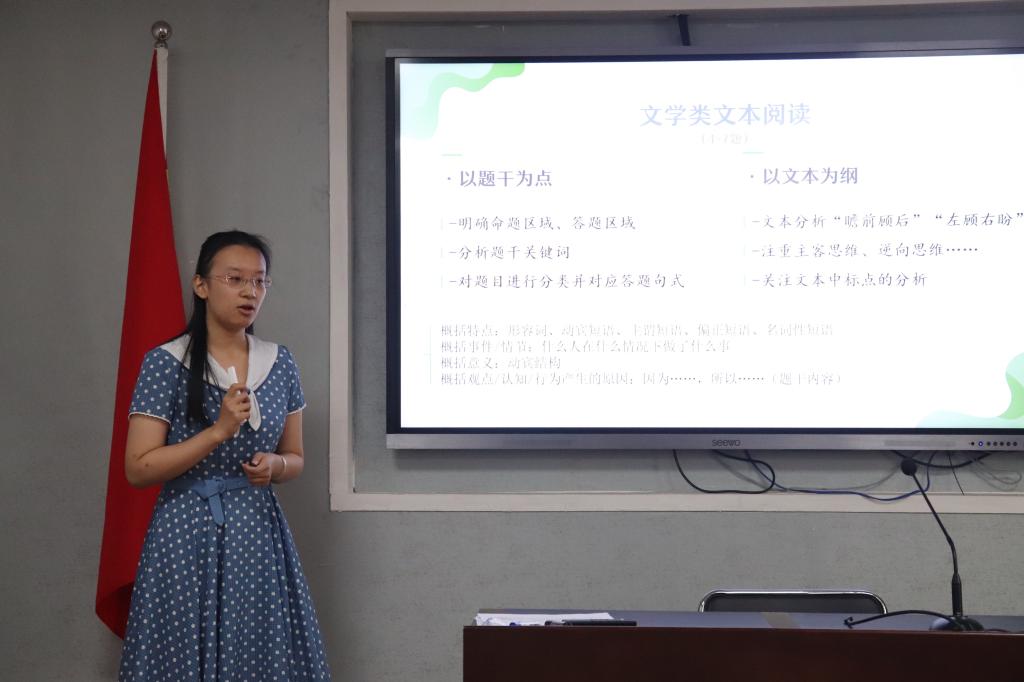 此外,武珞路实验中学实习生饶静、湖北华宜寄宿公司实习生邵若涵结合武汉市中考题型,分别从作文讲评与文学类文本阅读的角度展开专题汇报。