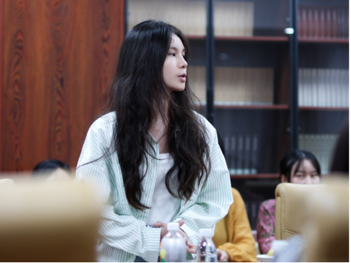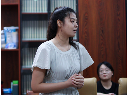 22名新生依次用个性、丰富的话语向在座的导师们介绍了自己,主要围绕本科经历、兴趣爱好展开。2023级出版专硕班长何人杰作为代表,向学弟学妹们表达了欢迎,还寄语学弟学妹们,要注意身体健康、保持规律的作息与饮食;同时要早做计划,在探索中寻求答案,大胆尝试、大胆表达。