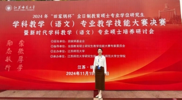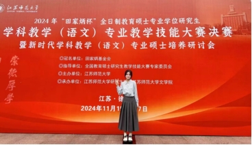 11月17日,2024年全国“田家炳杯”全日制教育硕士专业学位研究生学科教学(语文)专业教学技能大赛决赛在江苏师范大学圆满落下帷幕。公司2022级学科教学(语文)专业硕士研究生罗怡、张晶婷同学荣获一等奖,指导教师黄姣雪获得“优秀指导教师奖”。