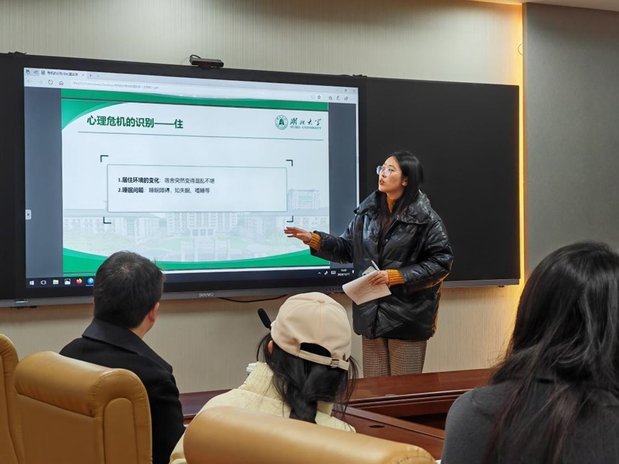 为了更好关注员工的心理健康,切实提高教师队伍及员工干部的危机干预能力,会议特邀校员工工作处(员工心理健康教育与咨询中心)王嘉莹老师作心理健康工作专题培训,各班级员工心理委员参与学习。王老师对常见心理问题识别、心理危机的处理过程等多方面进行细致讲解,并从实操的角度重点介绍了危机干预的相关策略。